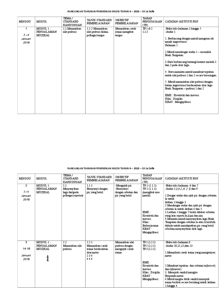 Imej ini di ambil dari artikel berikut : Rancangan pengajaran tahunan (kssr) semakan pendidikan kesenian tahun 2 (muzik) minggu. Kurikulum pendidikan muzik sekolah rendah dibina berasaskan empat modul kurikulum dengan peratus pengagihan. Pendidikan muzik rph muzik tahun 6. Berikut merupakan rpt 2019 pendidikan muzik tahun 6 kssr.
