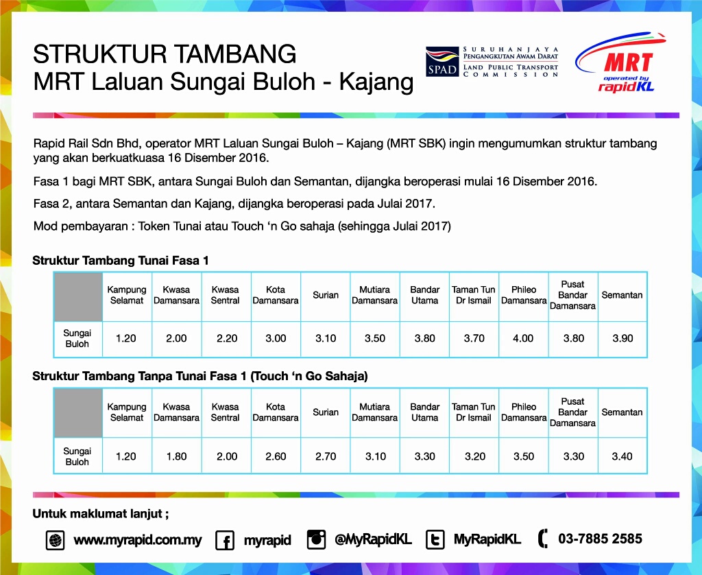 Fasa i jajaran mrt laluan kajang dari stesen sungai buloh hingga stesen semantan, bermula operasi pada 16 disember 2016. Mrt sungai buloh kajang kuala lumpur mrt sbk 2 2018. Sungai buloh kajang line is too long. And pls don't follow singapore way of naming their mrt line. * penumpang digalakkan untuk menggunakan kad myrapid (bagi laluan rel rapid kl) atau touch n go semasa menggunakan perkhidmatan tren bagi perkiraan tambang yang lebih rendah dan pertukaran yang.